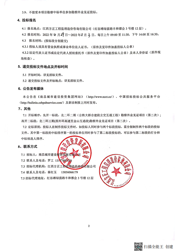 北二环二期(公铁大桥合建段立交互通工程)、北二环三期(西外环高速至金山大道段)勘探外业见证项目(第二次)招标通告